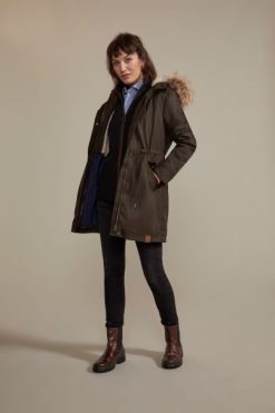 αποθήκη στο βουνό Stirling γυναικεία κερωμένο βαμβάκι παρκά χακί μόδας