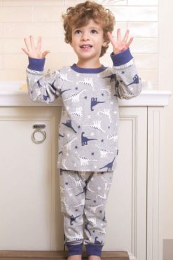 νέα αποθήκη στο βουνό βρυχηθμός-σετ πιτζάμα αγοριών με δεινόσαυρο διάσωσης γκρι-πράσινο