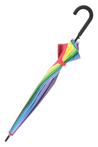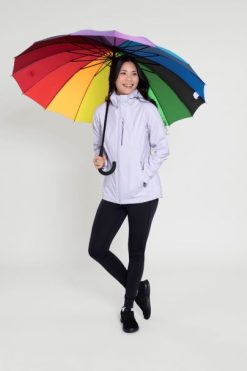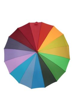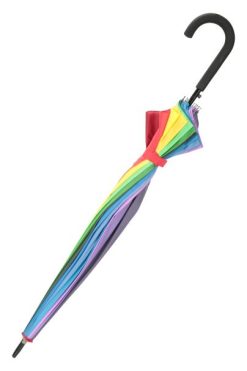 μεγάλη, πολύχρωμη και αποτελεσματική, η μεγάλη ομπρέλα ουράνιου τόξου έχει λαβή με μαξιλαράκι και προσφέρει εξαιρετική κάλυψη από τη βροχή χάρη στον σχεδιασμό της διπλής στέγης.