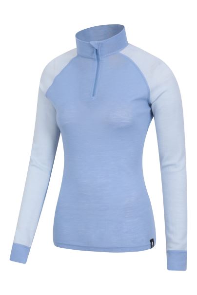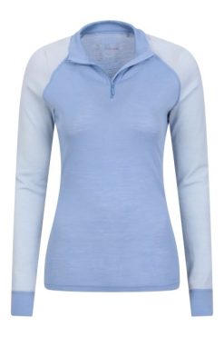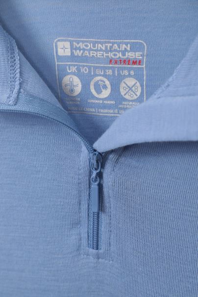 Γυναικεία θερμική κορυφή με φερμουάρ Merino Ii μοδάτη αποθήκη στο βουνό παλ-μπλε