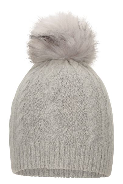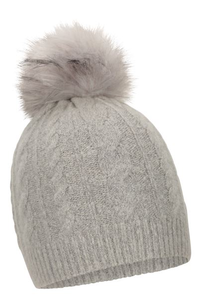 Η γυναικεία μπουκιά μας με πλέξη με φτερό καλώδιο είναι κατασκευασμένη από μαλακό πλεκτό ύφασμα με κομψό σχέδιο πομ-πομ από ψεύτικη γούνα – ιδανικό για τους πιο κρύους μήνες.