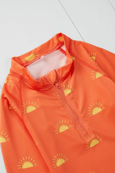 Τα μακρυμάνικα Rash γιλέκα μας θα είναι απαραίτητα για το καλοκαίρι. Αυτό το έντονο πορτοκαλί παιδικό γιλέκο συμπληρώνεται με στάμπα σε συνδυασμό με την πλάτη σε ένα ειδικό φιλικό προς το περιβάλλον ύφασμα. είναι κατασκευασμένο από ανακυκλωμένα πλαστικά μπουκάλια και έχει προστασία UV Upf50+. με ιδιότητες γρήγορου στεγνώματος, τα παιδιά μπορούν να φορούν αυτό το ευέλικτο γιλέκο εξανθήματος μέσα και έξω από το νερό. Διαθέτει ψηλή λαιμόκοψη με φερμουάρ ένα τέταρτο και προστατευτικό φερμουάρ που μειώνει τη δυνατότητα μάσησης. Η τονική ραφή με επίπεδες ραφές προσθέτει επιπλέον άνεση. Τα Rash γιλέκα μας είναι σχεδιασμένα για παιδιά και νήπια με μεγέθη που κυμαίνονται από 12/18m έως 9/10y.