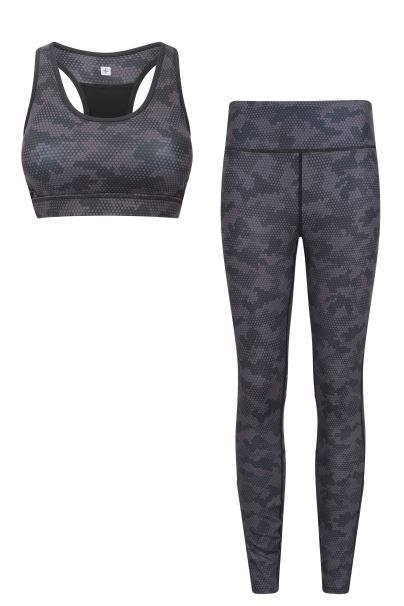 το σετ σουτιέν και κολάν με μοτίβο διχτυωτών κινήσεων είναι ιδανικό για προπονήσεις στο γυμναστήριο ή στο στούντιο. το κολάν είναι πλήρως αδιαφανές με διχτυωτούς πίνακες και φαρδιά ζώνη. το σουτιέν σχεδιάστηκε για άσκηση ενδιάμεσης πρόσκρουσης με ράχη για ελευθερία κινήσεων.