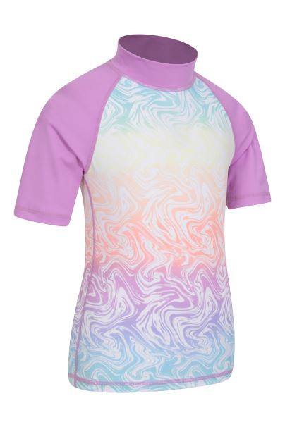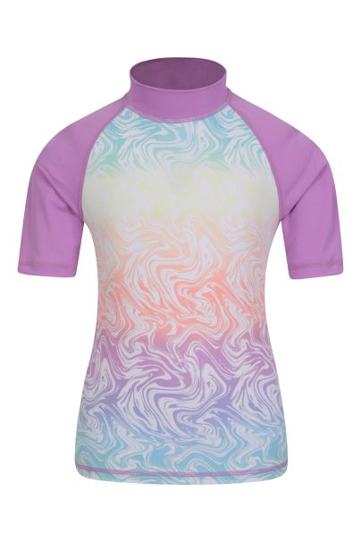 το κοντομάνικο παιδικό εμπριμέ γιλέκο εξανθήματος είναι ένα πρακτικό, ελαφρύ μπλουζάκι αντηλιακής προστασίας. Το ύφασμα έχει επεξεργασία Upf50+ και στεγνώνει γρήγορα με επίπεδες ραφές, καθιστώντας το ιδανικό για κολύμπι και παιχνίδι σε εξωτερικούς χώρους ή για να το φοράτε κάτω από μια στολή.