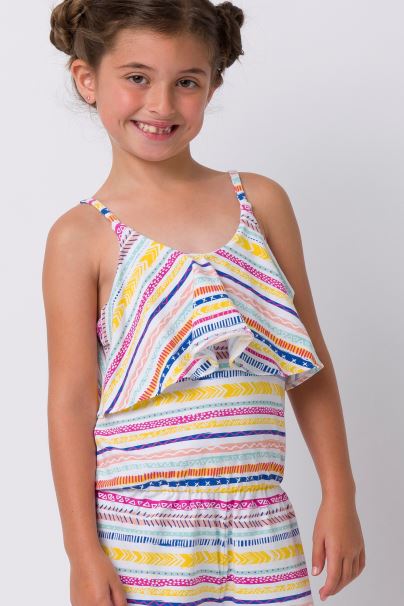 Αυτή η ολόσωμη φόρμα εμπνευσμένη από το ουράνιο τόξο είναι ένα από τα ξεχωριστά κομμάτια της σεζόν και είναι τέλεια για μέρες στην παραλία και για οικογενειακά Bbq.
