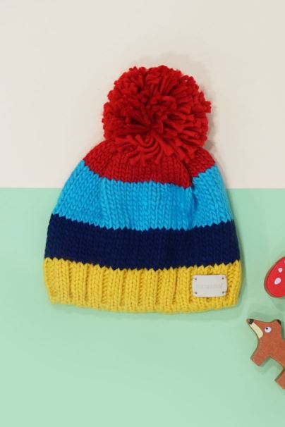 χοντρό πλεκτό καπέλο σε διάφορα χρώματα με φλις φόδρα και τελείωμα με μεγάλο μπουμπούκι.