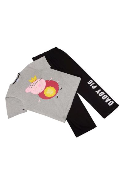 αυτό το επίσημο εμπόρευμα Peppa Pig διαθέτει μπαμπά γουρουνάκι σε μεγάλη, κεντρική εκτύπωση. το σετ πιτζάμας διαθέτει μπλουζάκι με λαιμόκοψη με κοντό μανίκι και μακρύ, άνετο παντελόνι πιτζάμας.
