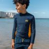 ιδανικό για χρήση στις διακοπές σας στην παραλία, το παιδικό μακρυμάνικο γιλέκο εξανθήματος είναι άνετο να φορεθεί, είτε μόνο του είτε κάτω από μια στολή. Προστατευτικό στην υπεριώδη ακτινοβολία με σύνθεση νάιλον-σπάντεξ, το ύφασμα είναι ελαφρύ και ελαστικό, δίνοντάς τους πλήρη ελευθερία κινήσεων.