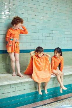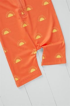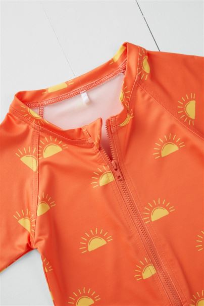 Αυτό το παιδικό μαγιό με στάμπες ήλιου θα είναι το νέο σας απαραίτητο καλοκαιρινό μαγιό. το πορτοκαλί μαγιό έχει ένα συνδυασμένο στάμπα στην πλάτη που θα φωτίσει τη μέρα οποιουδήποτε. το ύφασμα είναι ιδιαίτερα ιδιαίτερο καθώς είναι κατασκευασμένο από ανακυκλωμένα πλαστικά μπουκάλια, στεγνώνει γρήγορα και έχει προστασία Upf50+. Αυτό το μαγιό έχει στρογγυλεμένη λαιμόκοψη με φερμουάρ ένα τέταρτο και προστατευτικό με φερμουάρ για επιπλέον άνεση. τα κοντά μανίκια και τα σορτς δίνουν σε αυτό το μαγιό την απόλυτη Onesie ατμόσφαιρα. είναι σχεδιασμένο για Unisex για μωρά και παιδιά με μεγέθη από 12/18 μηνών έως 9/10 ετών.