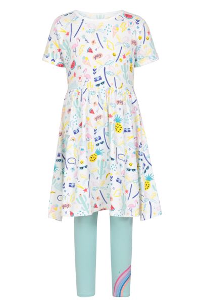 όμορφο και χαριτωμένο για το καλοκαίρι – το παιδικό φόρεμα με ρολό με κολάν είναι εξαιρετικό για καθημερινό ντύσιμο. κατασκευασμένο από βαμβακερό ύφασμα ζέρσεϊ, ώστε να είναι απαλό και να αναπνέει. αυτή η στολή 2 τεμαχίων συνοδεύεται από ένα πολύχρωμο εμπριμέ φόρεμα και ένα άνετο ζευγάρι κολάν.