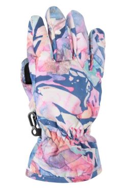σκούρο-ροζ εμπριμέ εμπριμέ παιδικά γάντια σκι αποθήκη βουνού