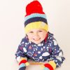 χοντρό πλεκτό καπέλο σε διάφορα χρώματα με φλις φόδρα και τελείωμα με μεγάλο μπουμπούκι.