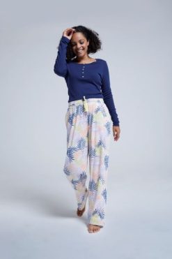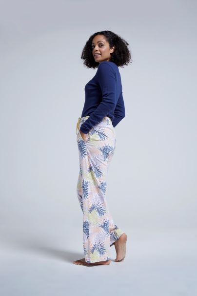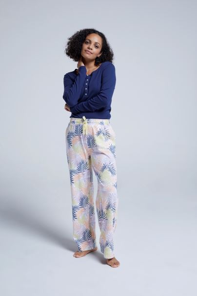 Απολαύστε άνετο γυναικείο παντελόνι με βιολογικές πιτζάμες. φτιαγμένα από μαλακή φανέλα από 100% οργανικό βαμβάκι για άνεση, αυτά τα χαλαρά πάτους διαθέτουν ελαστική μέση με λεπτομέρεια από κορδόνι και πλαϊνές τσέπες. φινιρισμένα σε παραδοσιακό σχέδιο, είναι ιδανικά για χαλάρωση και ύπνο.